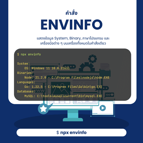 เรียนรู้การใช้คำสั่ง npx envinfo เพื่อแสดงข้อมูล System, Binary, ภาษาโปรแกรม และเครื่องมือต่าง ๆ บนเครื่องทั้งหมดในคำสั่งเดียว
